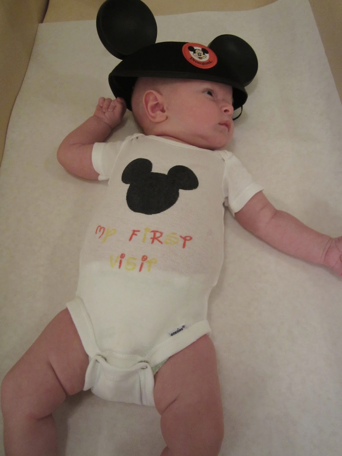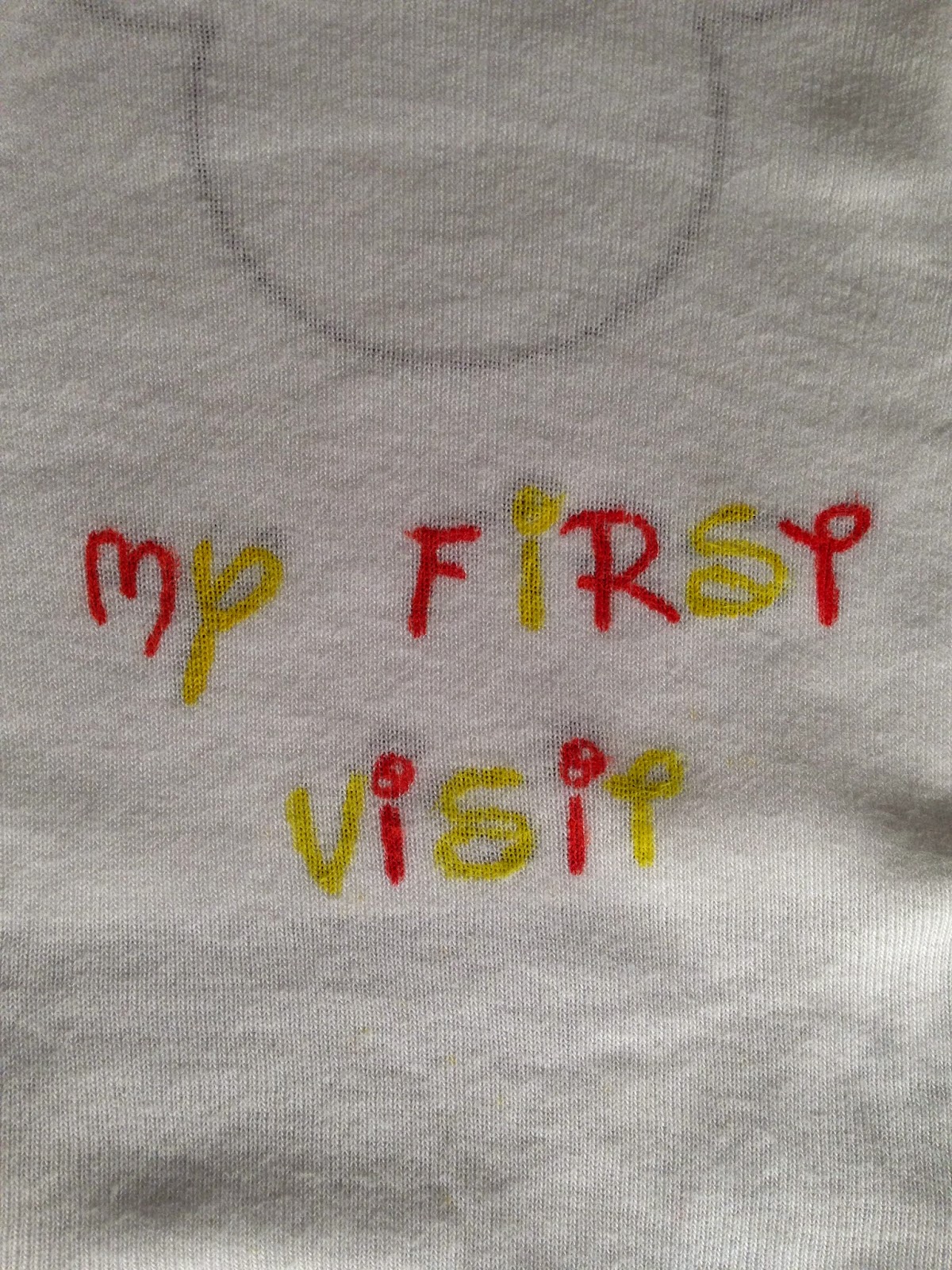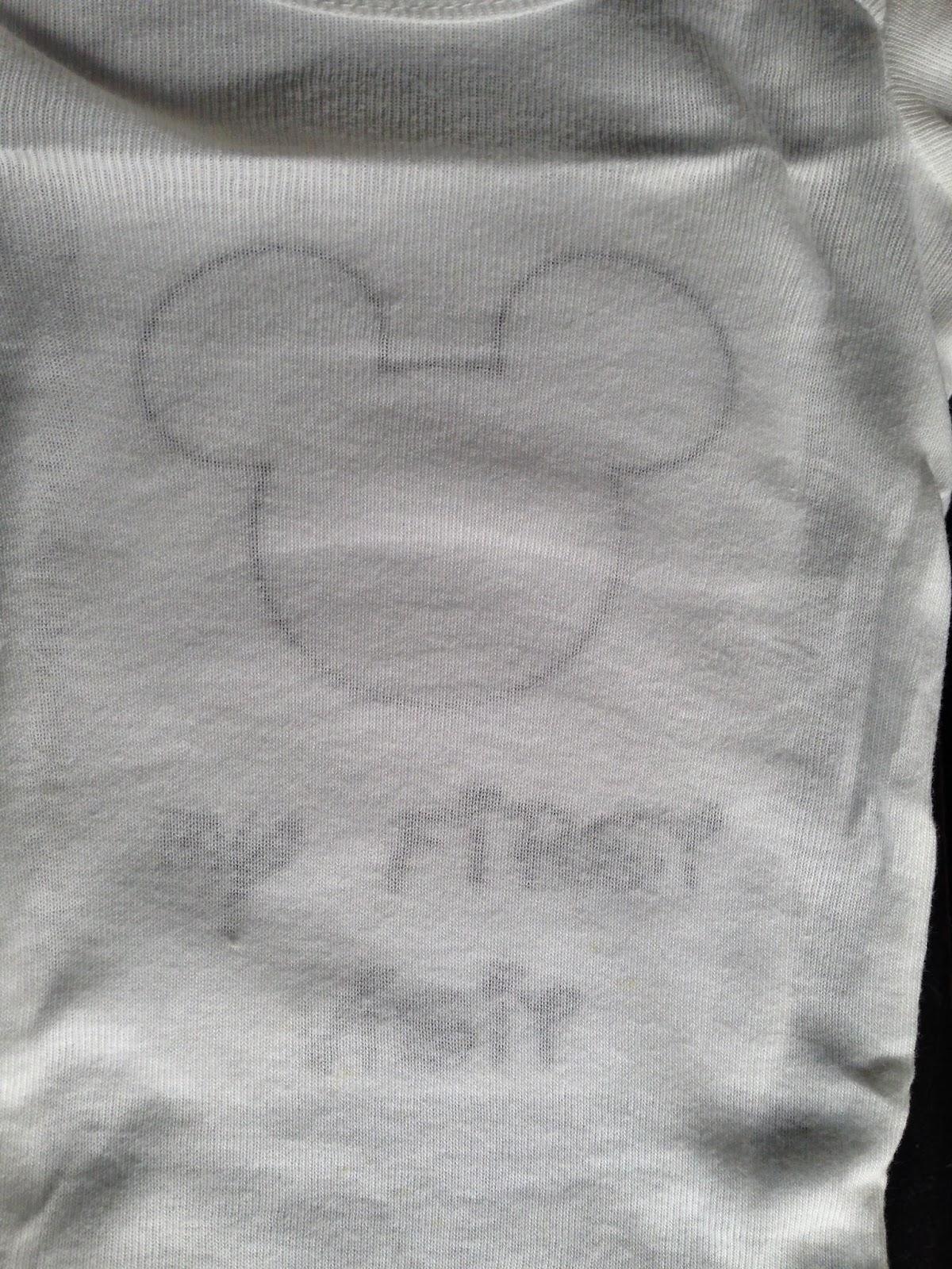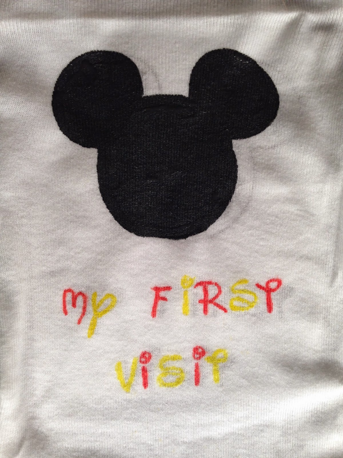Hey Disney fans! I have another easy DIY project for you today for those of you with little ones. We recently took our baby boy to Disneyland for the first time and I wanted to make something cute for him to wear during his visit. The first thing I did was get a plain white onesie and measure the area where I wanted the design to be. Then I came up with this outline on the computer (feel free to use it if you want, just please give credit!):
