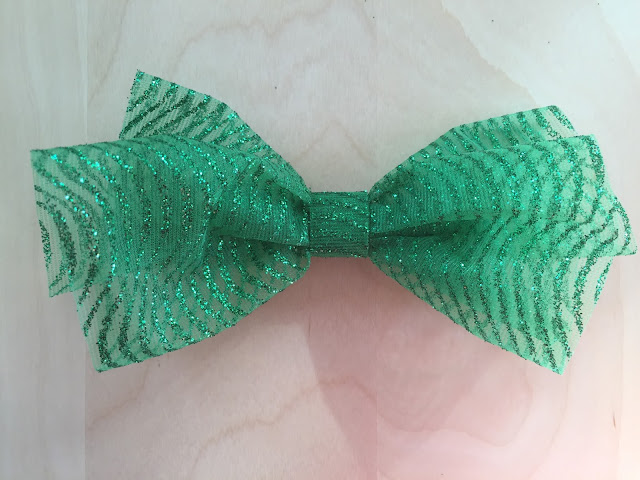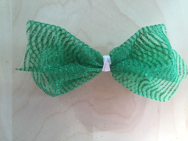 6. Ideally, I like to use a premade bow because I hate making bows, but I couldn’t find a green one, so I made this one on my own. I gathered some of the tulle and secured the middle with a trash bag twist tie.