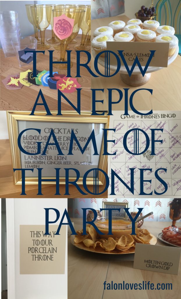 I’m going to assume since you are reading this blog post that you frequent the interwebs, which means I am sure you know that the much-anticipated Game of Thrones season six premiered last weekend. I am a huge GoT fan, and for a while it was the only reason we had HBO. However, now thanks to Google Chromecast and HBONow, everyone can get access to the magic of GoT soooo easily. Chromecast plugs into your TV and allows you to broadcast movies and programming from your laptop or iPad right on your TV screen. HBONow is kind of like Netflix for HBO. So you sign up for HBONow (there’s even a free trial) and snag a Google Chromecast and you can binge on GoT to your heart’s content…not that I would ever do that. I was asked to host a GoT premiere party, and I maybe got a wee bit excited about it. I put together some themed drinks and snacks, busted out some DIY decor, and arranged GoT Bingo. A few of our friends came over last Sunday, and we first watched the season five finale and then watched the premiere. I’ll keep this spoiler free, but I really enjoyed the premiere, and I hope that we get to see some of these storylines really develop. I’m excited for this season in particular since the sixth book hasn’t come out yet, which means no one knows what is going to happen. AKA no spoilers and no smug friends being all like I already know who’s going to die because I read the book. You know who I’m talking about. Anyway, without further ado, here are the highlights from our Game of Thrones premiere party!