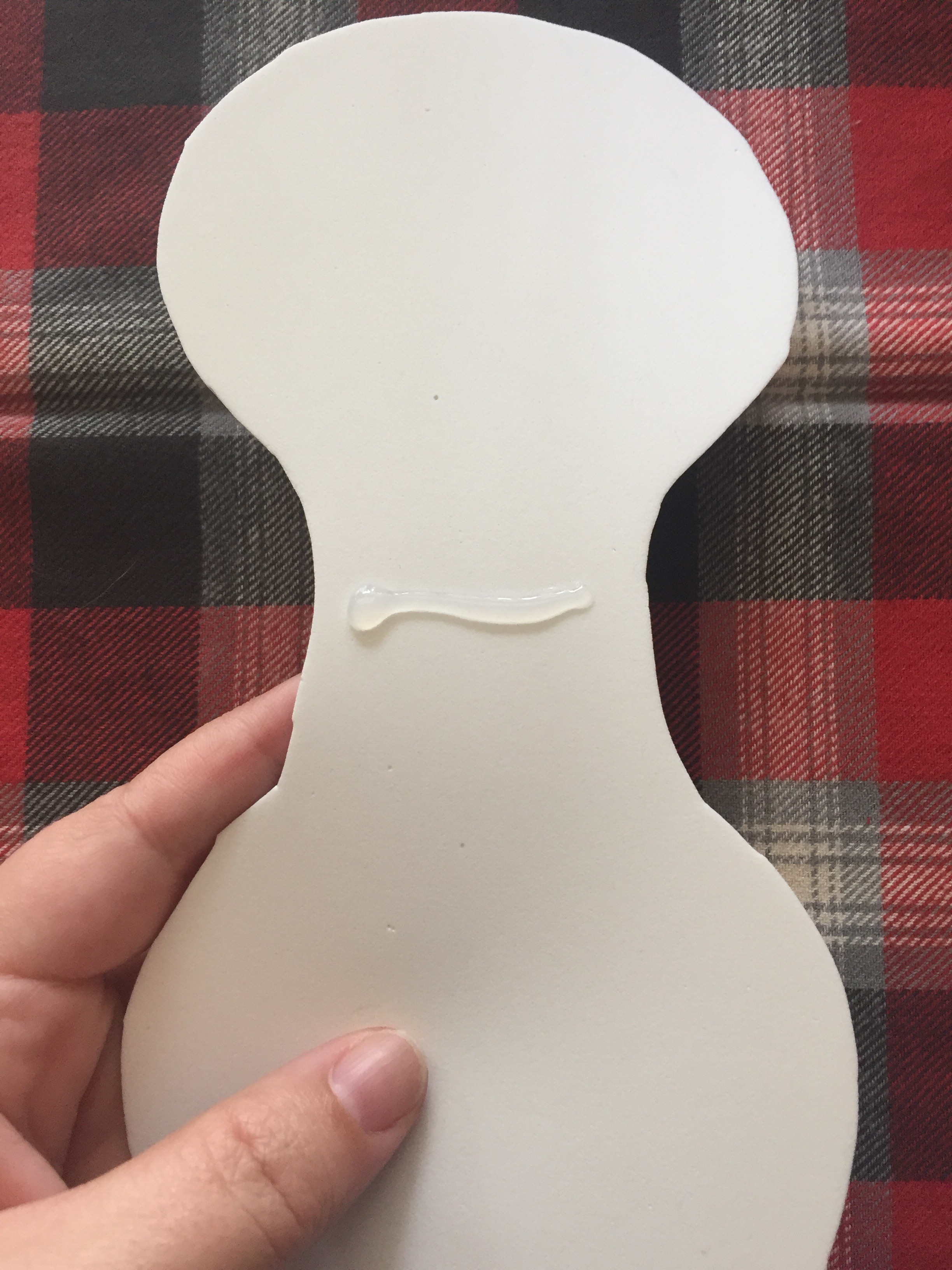 Lay out your fabric wrong side up. Place a thin line of fabric glue along the middle of the ear shape.
