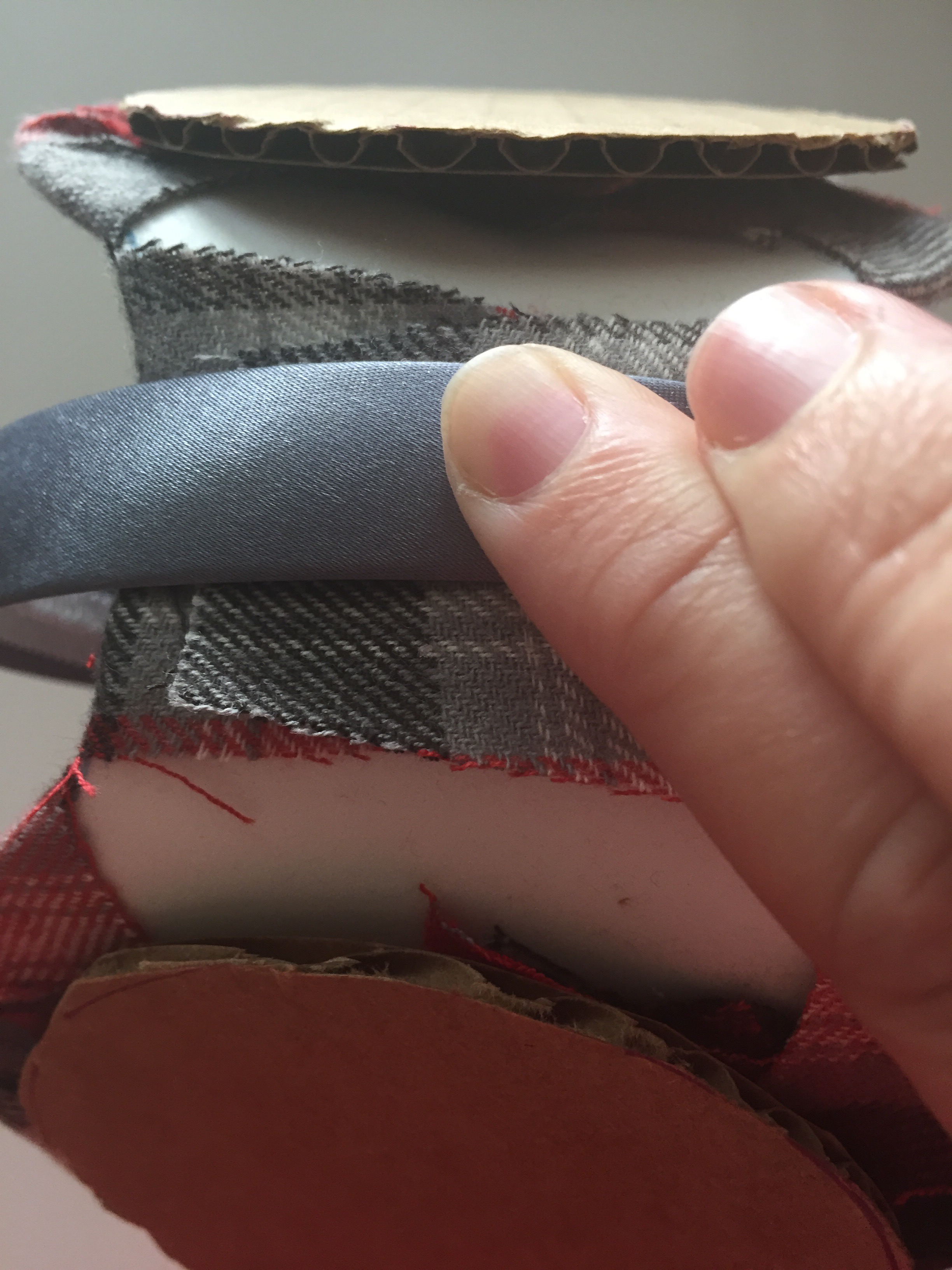 Repeat this process until you have two foam ear templates completely covered with your fabric.