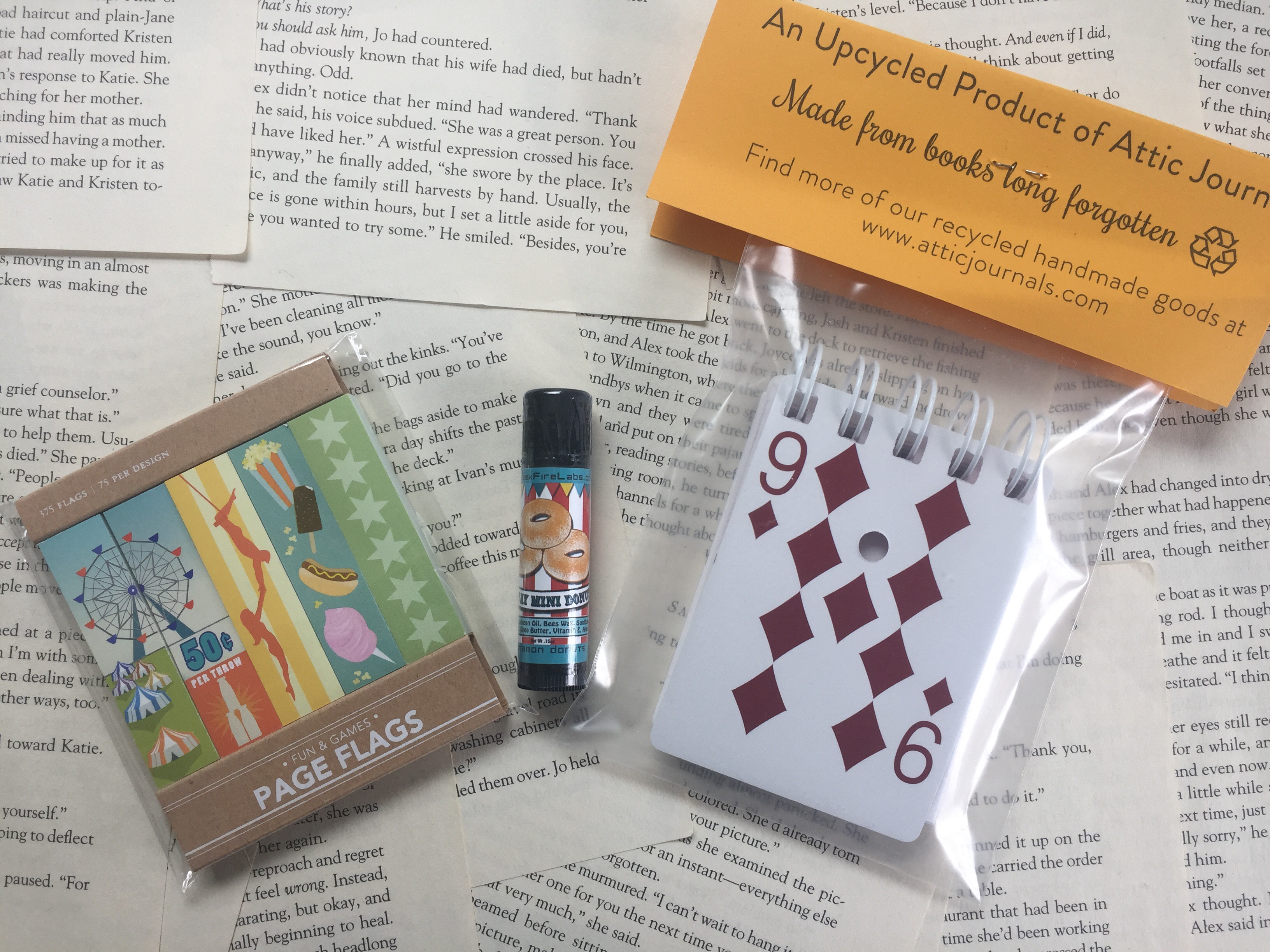 The little goodies in this month’s box were some of my favorite ever. I love when I get items that I will actually use! Attic Journals provided this cute playing card notebook and I LOVE these circus themed page flags from Girl of All Work. And the lip balm from Geek Fire Labs is doughnut flavored y’all. Yeah, it’s as awesome as it sounds.