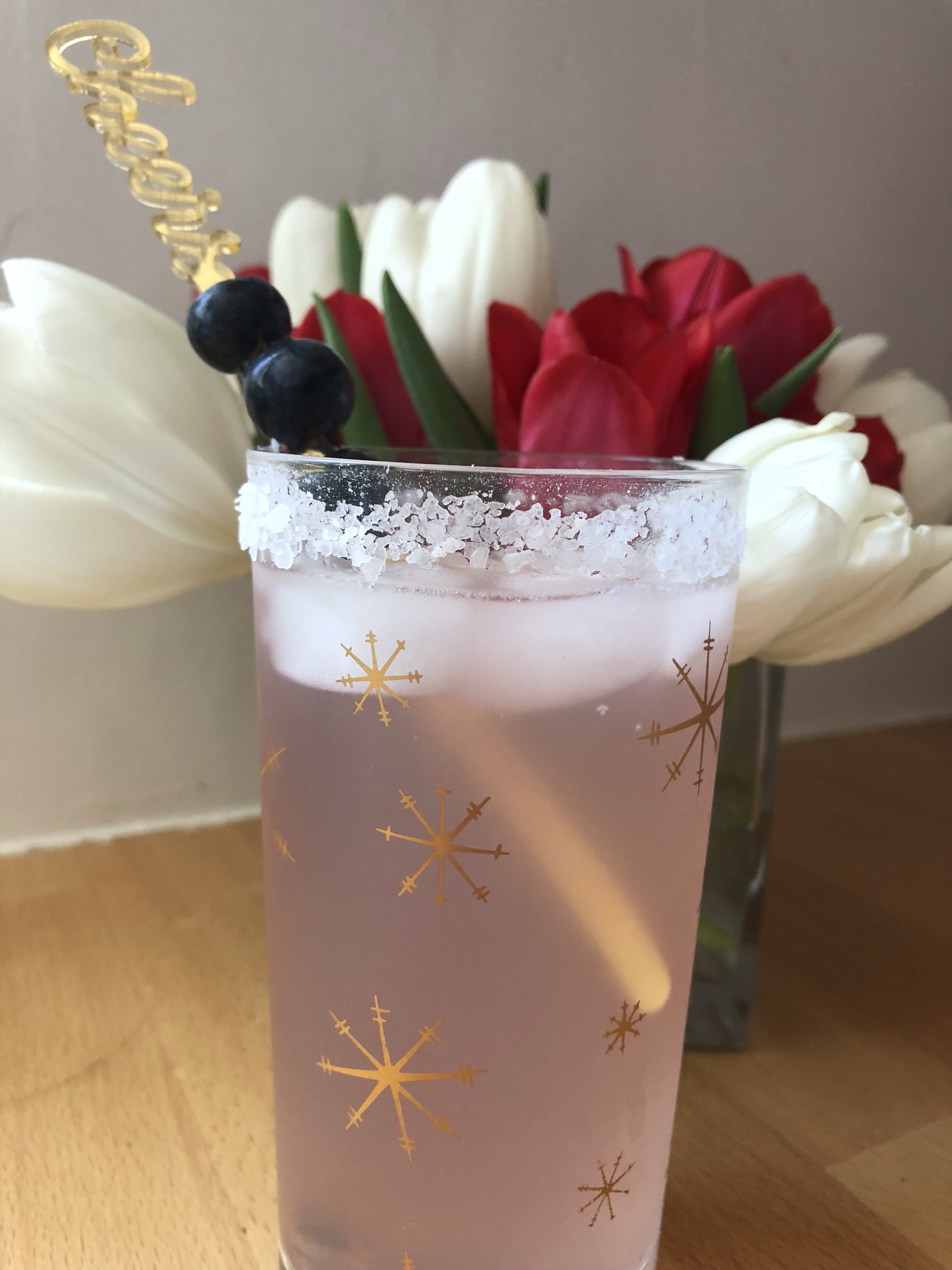 If you want to salt the rim of your glass, take an actual lime wedge and run it around the lip of the glass, then dunk the whole glass into the salt. Pour the entire contents of your shaker into your glass and add the blueberry garnish and you are all set! This is the perfect summer margarita! We served them on Fourth of July and they were a big hit! Cheers!