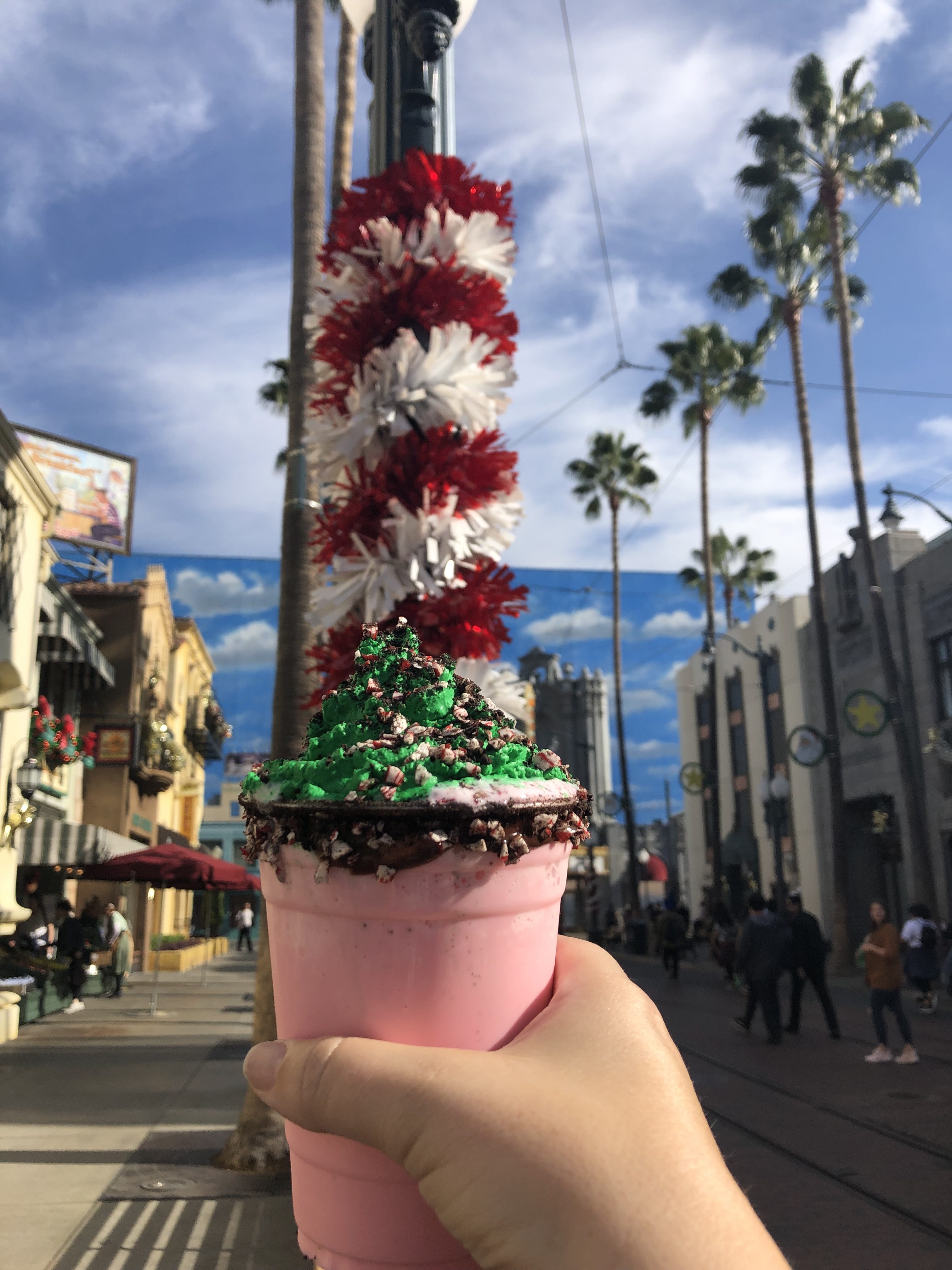 This is the peppermint shake from Schmoozies in California Adventure. Peppermint ice cream is one of my all-time favorite flavors, so I was all about this shake. My only problem with it was the mound of whipped cream on top. It makes for an adorable picture, but it dripped everywhere and was quite messy. Overall though, a very tasty treat.
