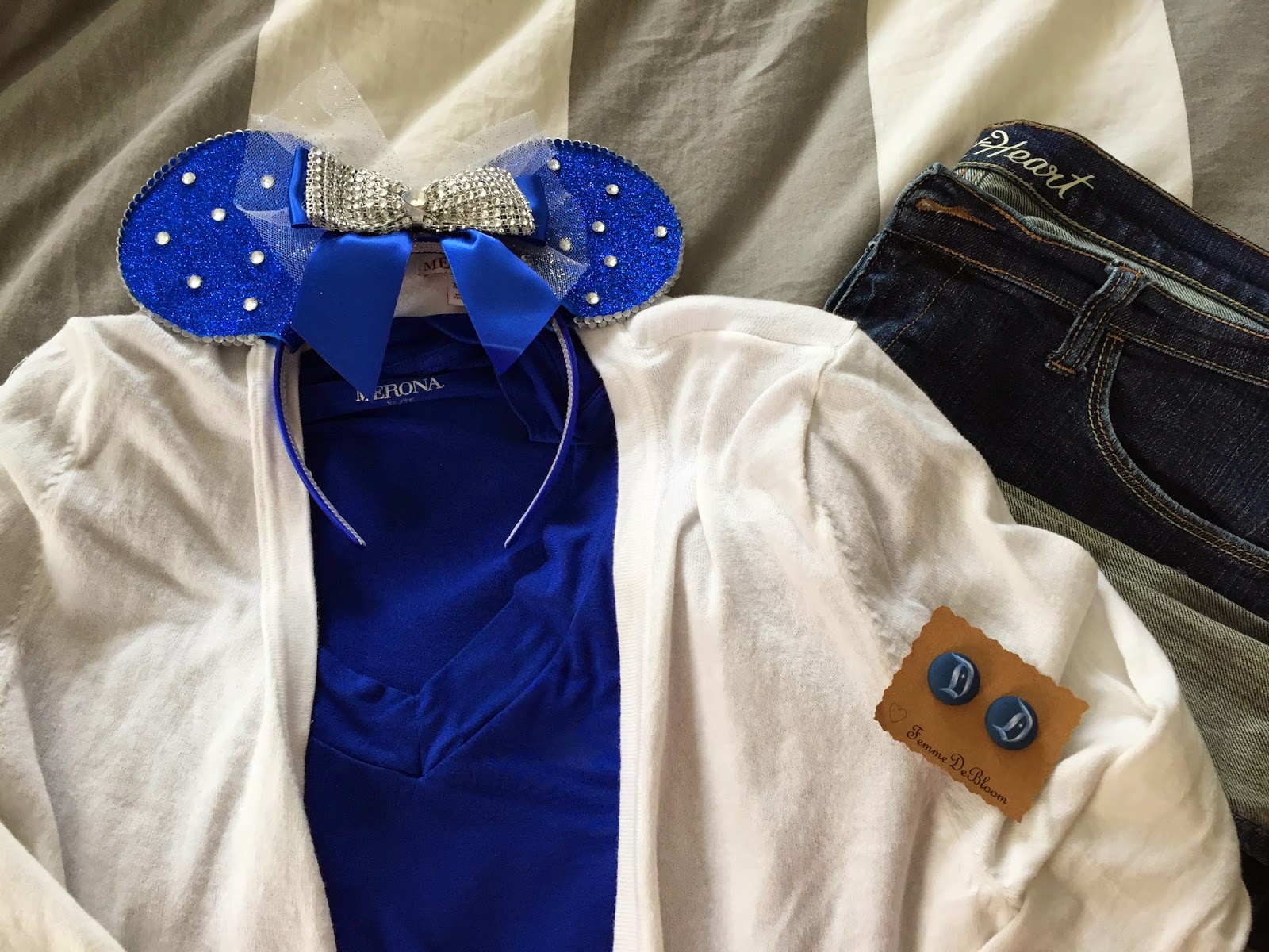 I am sticking with my old standby comfy jeans, a royal blue T-shirt, a white cardigan, my 60th Minnie ears, and these fabulous earrings from Femme De Bloom. The weather has been ridiculous here in So Cal lately, so I am going with a lightweight cardigan to give a little warmth. It’s light enough that I can easily throw it in my backpack if the day warms up. I will be starting the day in my Nike flip flops because I’m a Californian and that’s how I roll, but I imagine I will be switching over to my Skechers Memory Foam sneakers at some point. Chances are I will need a sweatshirt for night time weather and chances are pretty damn good that I will be buying a 60th one when I get to the park.