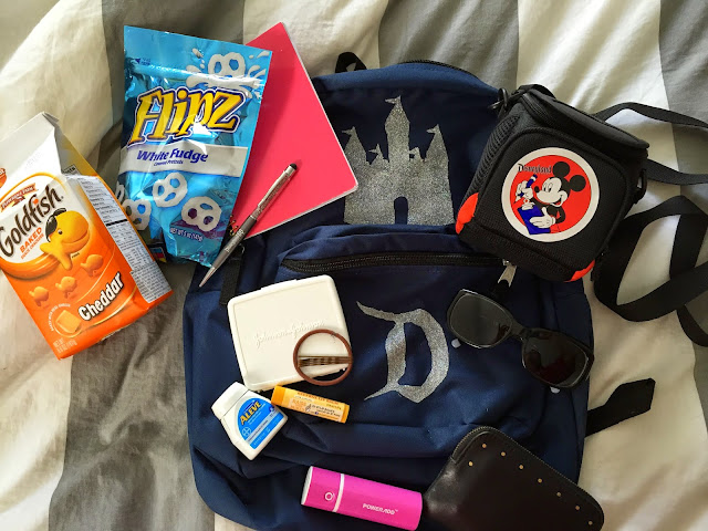Snacking is going to be a must throughout the day and while I will certainly be indulging in some of the special 60th treats, I am bringing my own goodies too. Goldfish crackers are a Disneyland staple for me and you can’t go wrong with white fudge pretzels. Because I will be bringing you all the highlights of the 60th, I’m bringing a notebook and pen to write down everything I want to tell you guys. Obviously I am bringing my camera and I will probably rock the tourist look of backpack and camera bag. The standard sunglasses, chapstick, hair tie, and bobby pins are musts for me, along with Aleve and a mini first aid kit (mostly for the bandaids). I also invested in a portable phone charger, since I will be Instagramming and Tweeting all the live long day. And of course, my wallet, since I will be spending money on all the merch. Not pictured, but I will also be bringing three or four water bottles since staying hydrated is going to be key in lasting through the day. (P.S. I made the 60th themed backpack the same way I made this Mickey messenger bag.)