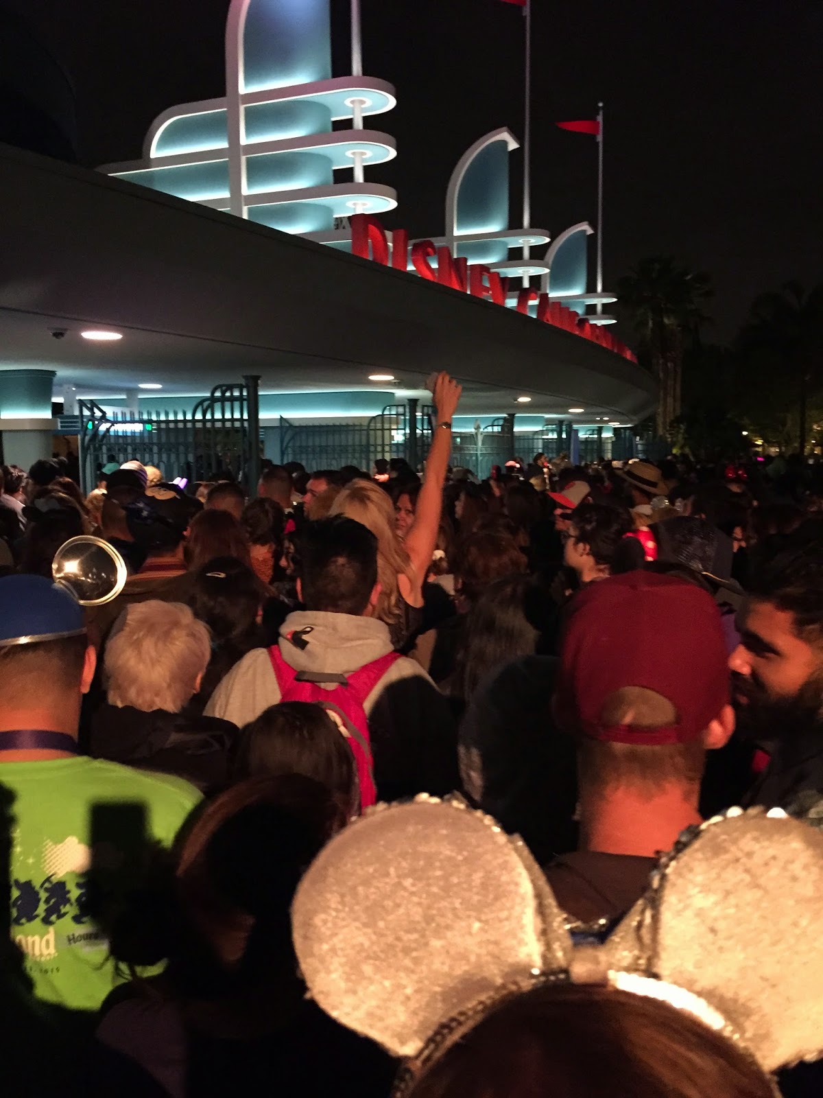 It was absolutely one of the most terrifying crowd experiences I have ever been in. There were no cast members directing people, no lines, no order, and zero communication. At one point (once we had actually gotten into DCA) I heard an executive cast member say to another CM in a joking manner “I knew people liked us, I didn’t think they liked us this much!” Um, really? You KNEW there were going to be record-breaking crowds, there just wasn’t enough preparation. Guests were put in a very unsafe situation and the poor cast members working the front lines were left to deal with the wrath of some very angry (and rude) people. After a very smooth and enjoyable morning, it was extremely frustrating to be put in this situation. I mean, we expected serious crowds. We left ourselves TWO HOURS to get into the park. We were not naive about the situation, but apparently some of the Disney higher ups were.