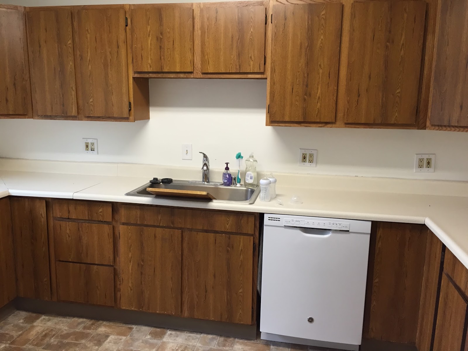….and I wasn’t so excited anymore. Originally the plan was to do some quick updates in the bathrooms and then focus our attention on converting our detached garage into a music room/man cave for the hubs. But after just a couple of days with this kitchen, we decided that it needed to be our first priority in the remodel game. One, because it was ugly, and two because it wasn’t functional. The layout was weird and the cabinets were installed incorrectly, rendering the uppers mostly useless. So we went for it. Not going to lie, I went into this project thinking it would take 7-10 days. Are you laughing at me? You should be. We’re currently on day 22 (including weekends, which are not work days, but are still days I have to live with an unfinished kitchen). The end is in sight, but we still have at least five more days of work before the kitchen is complete. And it has been rough. Here’s what I have learned so far: