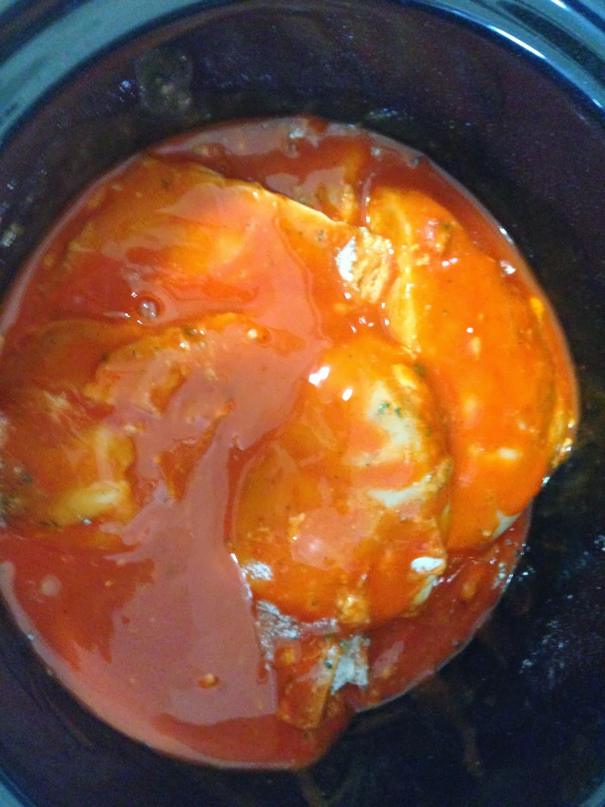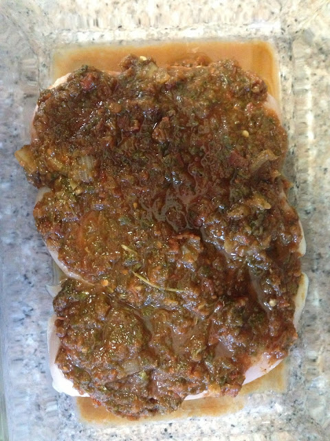 2. Preheat your over to 400 degrees. Place defrosted chicken breasts in a glass pan and cover with the salsa. Be generous with your salsa distribution!