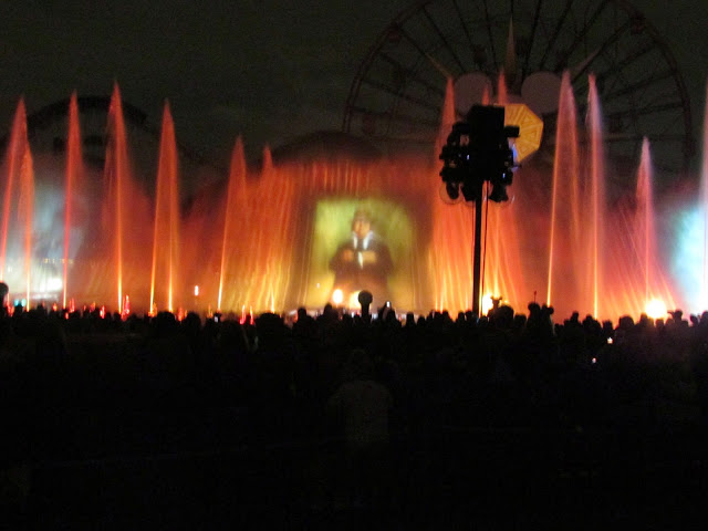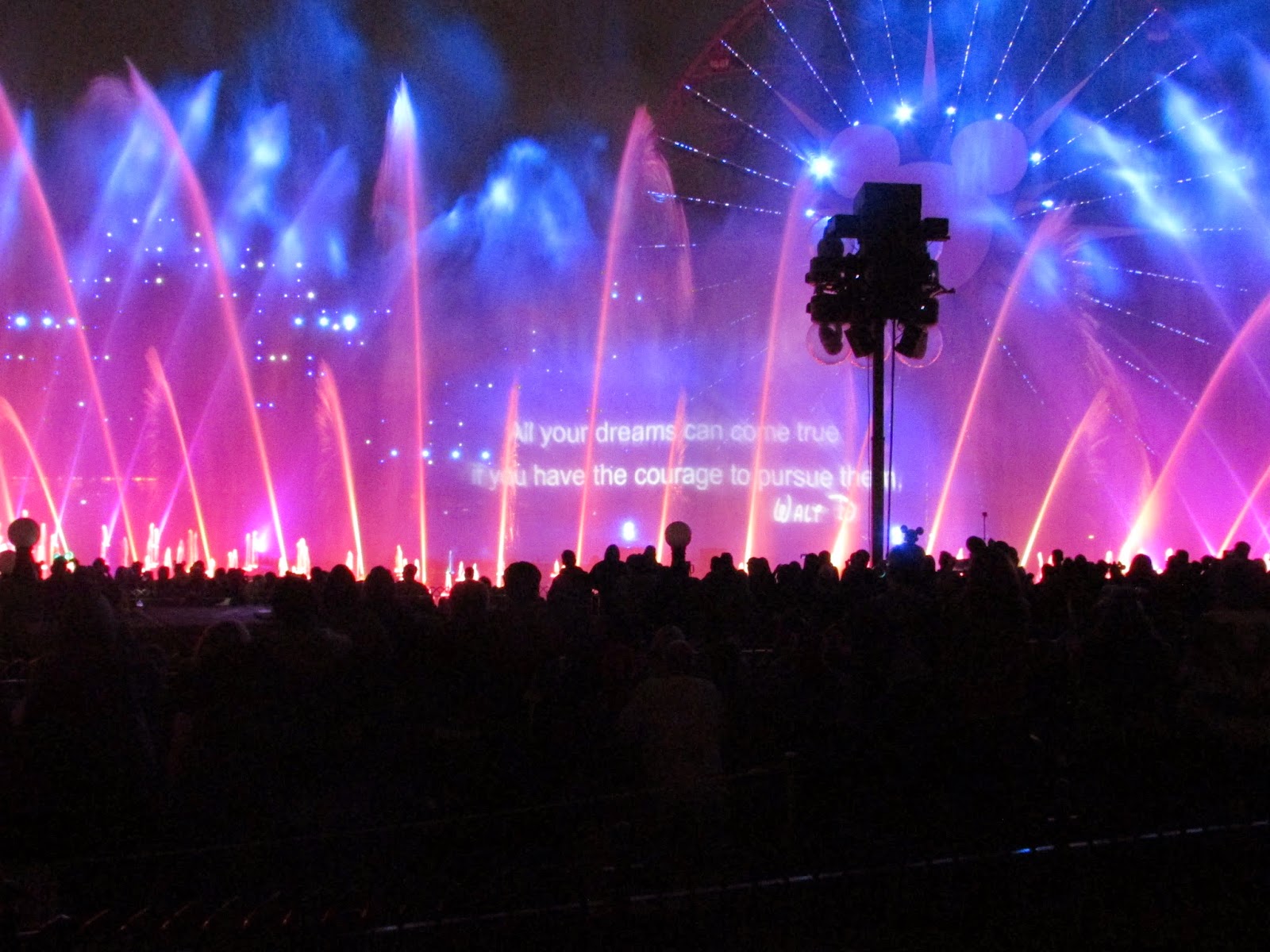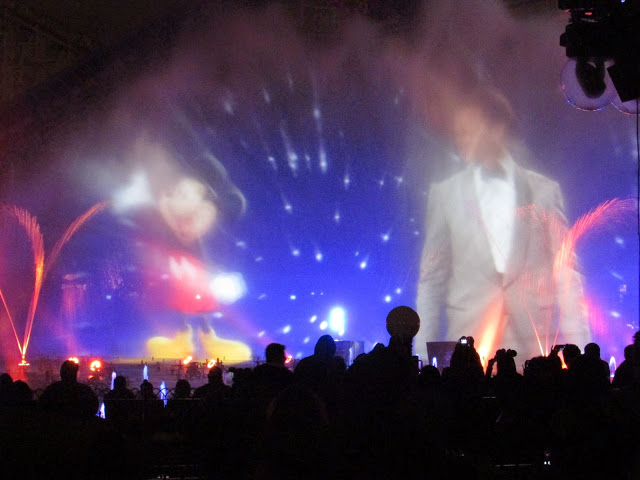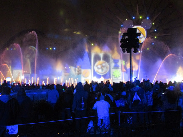 I was hoping this 60th WOC overlay would bring that element of story to the spectacular visuals and effects, and it did. I think this is exactly what needed to happen to WOC in order to make it a show that will last twenty years like Fantasmic! has. As I’m sure you have heard, Neil Patrick Harris hosts the show, alongside none other than Mickey himself. (Also, sorry for the blurry pics, it was a bit breezy while we were watching which made a difficult photo op even harder.)